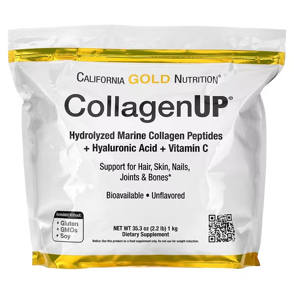 Колаген, гіалуронова кислота й вітамін C сприяють здоров’ю та нормальній роботі опорно-рухового апарату. CollagenUP від California Gold Nutrition містить три інгредієнти, які допомагають підтримувати здоров’я волосся, шкіри, нігтів, суглобів і кісток*. Порошок із нейтральним смаком легко додати до улюбленого напою, що робить його зручним способом включити колаген до раціону.