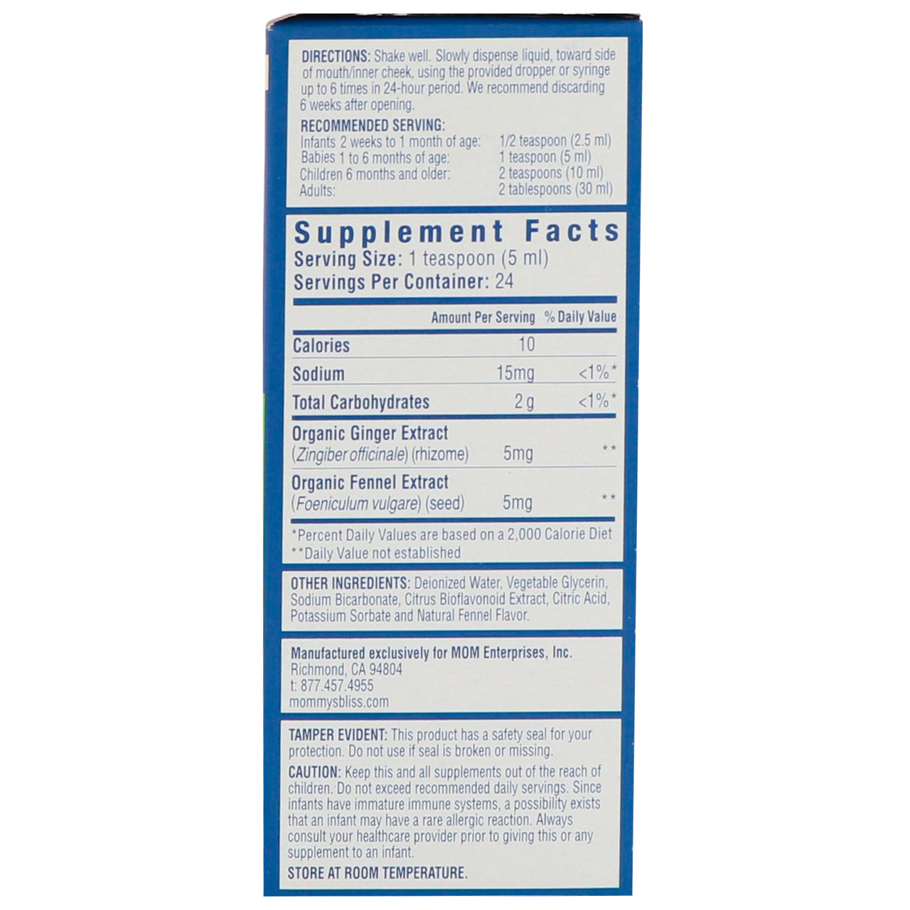 Оригінальна водичка проти кольок від Mommy’s Bliss являє собою безпечну та ефективну домішку на основі трав, призначену для усунення газів у животі та дискомфорту в шлунку, які часто пов’язані з кольками та прорізуванням зубів.